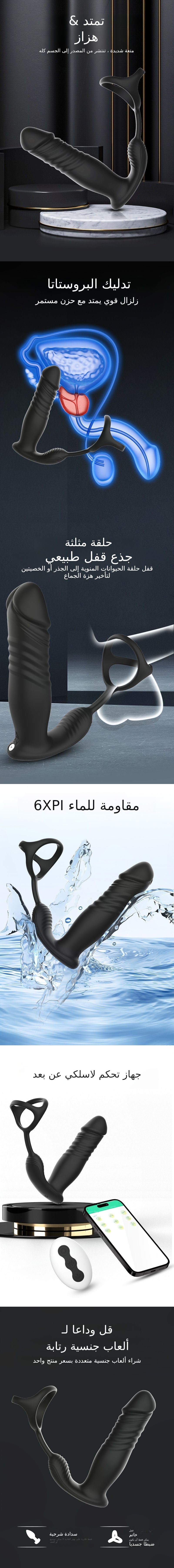 تطبيق التحكم عن بعد قابل للسحب الثلاثي خاتم قفل حلقة خفية الأذين الخلفي فتحة الشرج سدادة البروستاتا مدلك مثيرة للاهتمام والاهتزاز ذكي